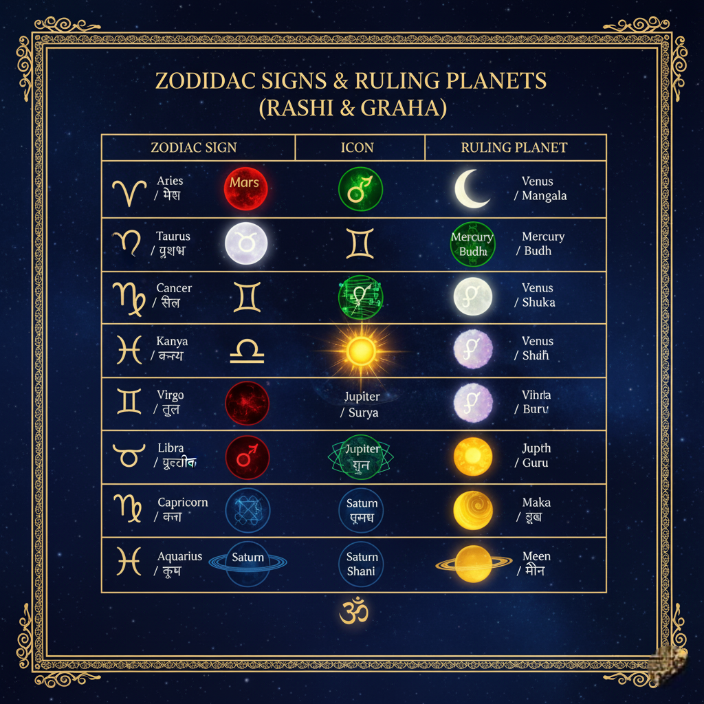 Zodiac SignRuling Planet (Lagna Lord)