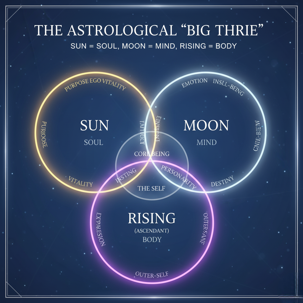 In modern astrology, people often talk about the Sun, Moon, and Rising as the “Big Three.”